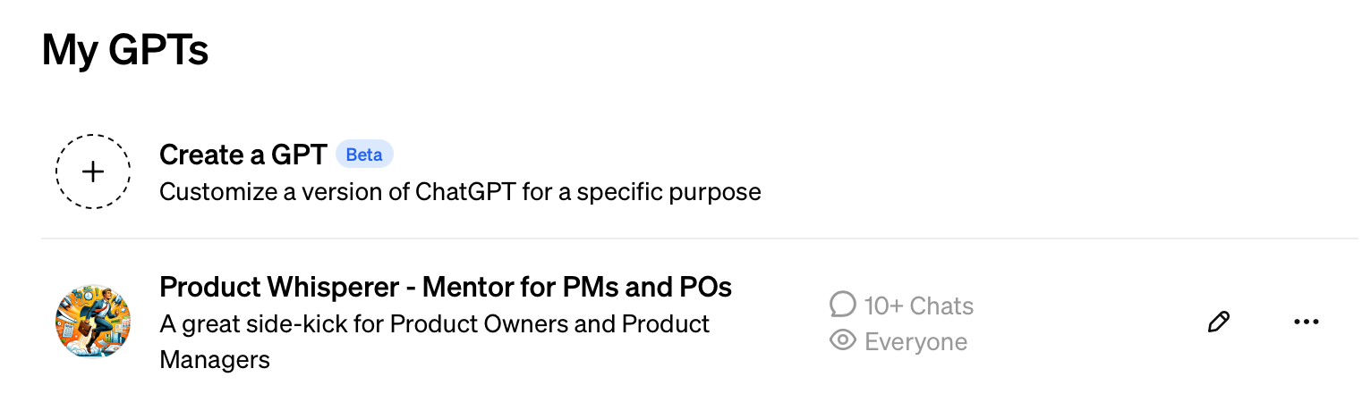 I have been working on my own Product Whisperer GPT. This is created specifically for product owners and product managers, to help them in day to day work or be a mentor.